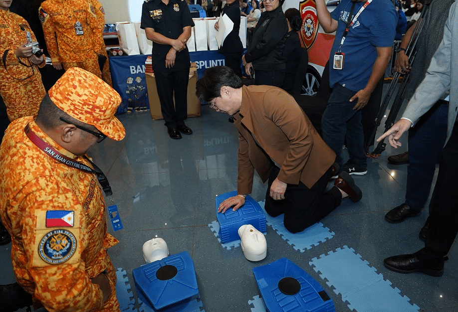 SM Supermalls President Steven Tan engages in a Cardiopulmonary Resuscitation (CPR) training.