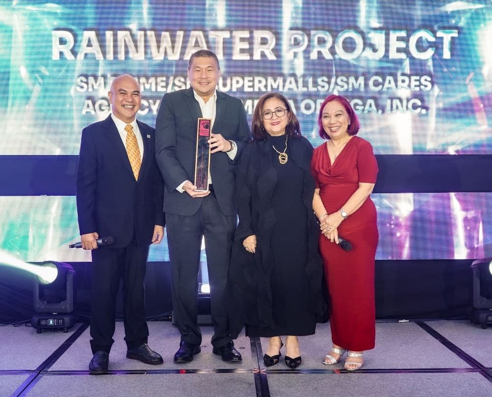 In the photo: SM Supermalls’ Executive Vice President Jonjon San Agustin (second from left) and Vice President for Corporate Marketing Grace Magno (second from right) accept the Gold Award at the Philippine Association of National Advisers (PANA)’s recent PANAta Brand Effective Awards Night 2024 for SM City Baguio’s innovative rainwater treatment facility (RTF).