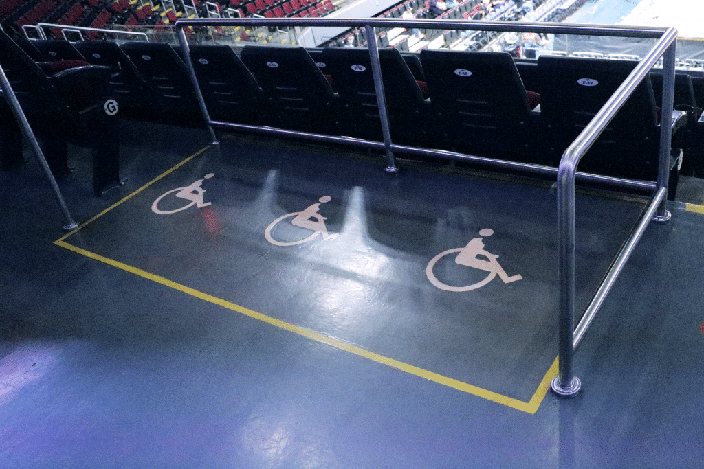 - Wheelchair-accessible entrances, seating, and restrooms