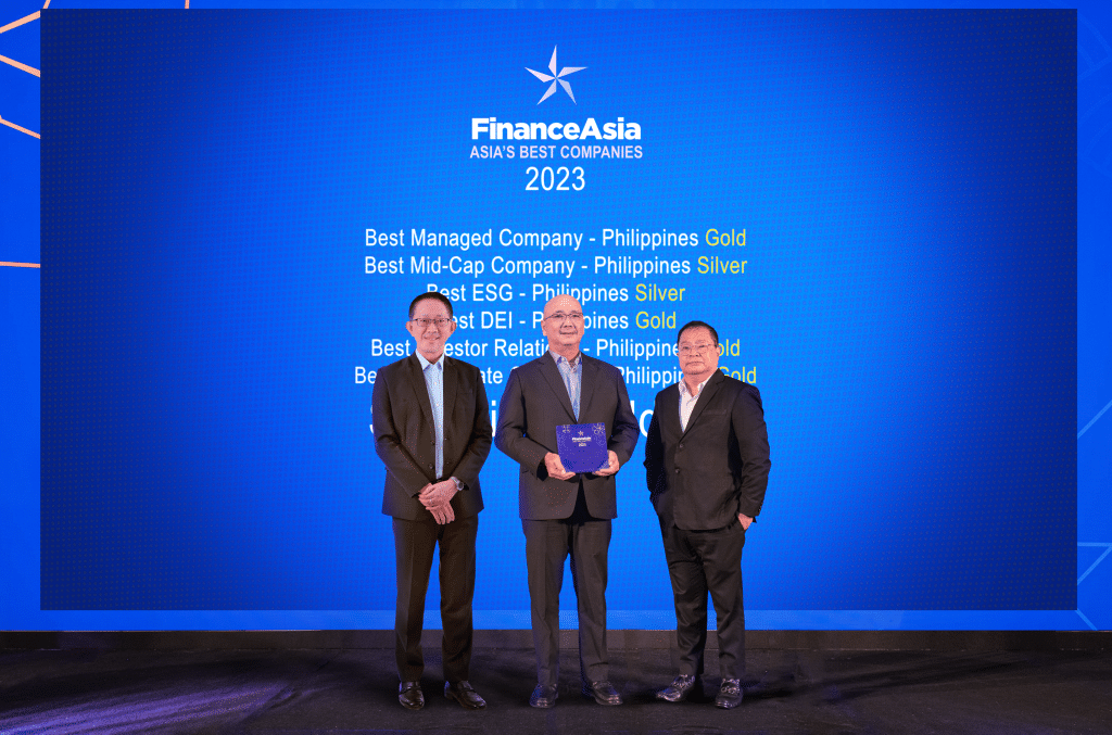 Likewise, SM Prime took home Gold Awards at the 2023 FinanceAsia Best Managed Companies held last June 28, 2023 in Hong Kong for Best Company in the Philippines, Best Real Estate Company in the Philippines, Best Investor Relations in the Philippines, Best CEO in the Philippines for Mr. Jeffrey Lim, Best CFO in the Philippines for Mr. John Nai Peng Ong, and Best Diversity, Equity and Inclusion (DEI) in the Philippines. The Company also received a Silver Award for the Best ESG Company in the Philippines category.